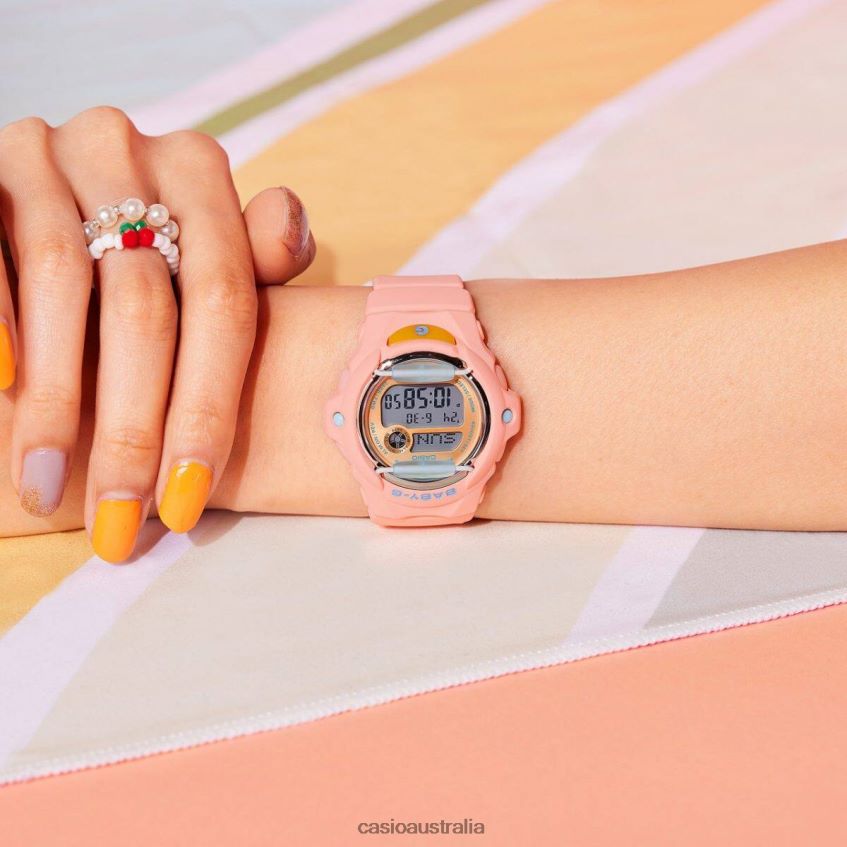Dive into summer fun with a playful, casual, active BABY-G in a color scheme that will send you soaking up the sun.The BG-169, with its charmingly compact design, takes on colors that playfully celebrate the beach.Soft coral pink celebrates the warmth of an ocean reef teeming with life. This fun design is sure to brighten your day. Bring the beach to your wardrobe and get your summer started.Playful, yet still practical. The shock-resistant structure stands up to bumps and scrapes, and water resistance up to 200 meters means you can even swim with it on.