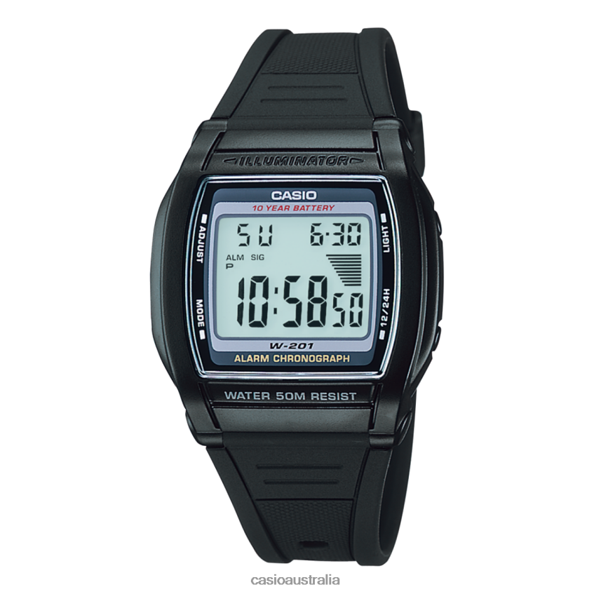 Black Casual Classic Watch with a Resin Band featuring a 10-Year Battery.