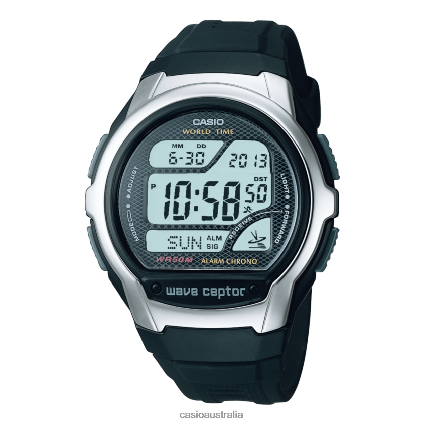 Black Digital Wave Ceptor Watch with Resin Band featuring Countdown Timer, World Time, 1/100 Second Stopwatch and EL backlight with Afterglow.
