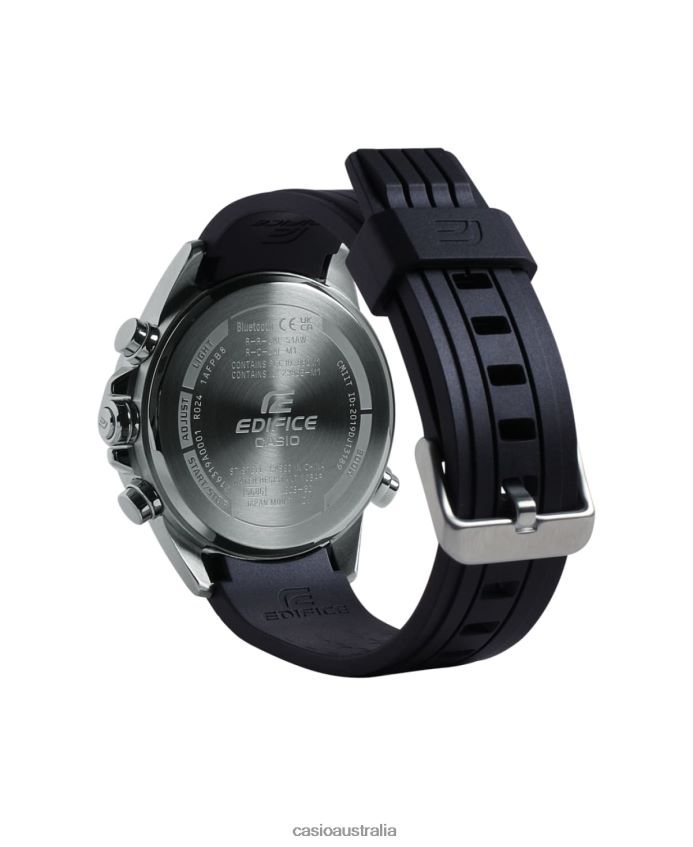 Welcome to the evolution of Speed & Intelligence - the high-spec, high-tech beauty of the EDIFICE metal chronograph with serious style and effortless smartphone connectivity.With this model, it's a snap to sync with your smartphone via Bluetooth and tap into the CASIO WATCHES app for full functionality at your fingertips. The app ensures button-free precision timekeeping when your phone is near. Developed to meet the needs of racing teams, the schedule timer syncs with your smartphone's calendar app to transmit schedule items to the phone and display start and end times on the watch's LCD. Equipped with LED light that illuminates with just a tilt of the wrist.Inspired by the sports car, the mechanical face design enhances depth and dimensionality to evoke the dynamic look, strength, and solidity of these high-performance vehicles.