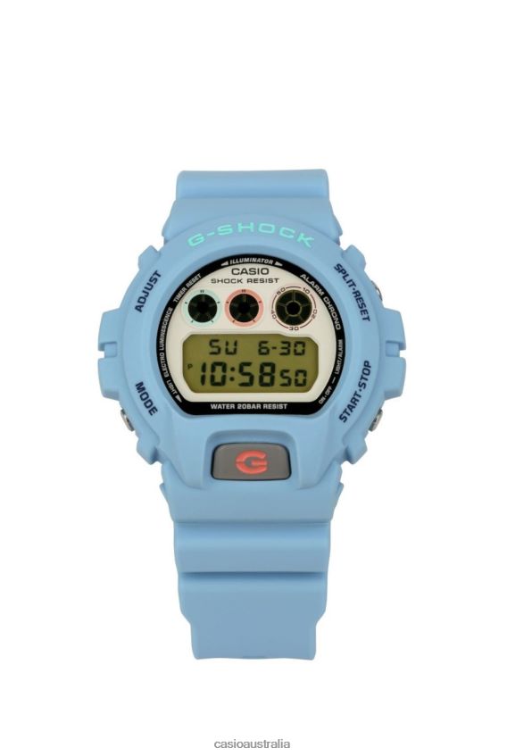 Limit One Per HouseholdJohn Mayer, inspired by a 1980s classic-and John's very first keyboard-the Casio PT-1. The G-SHOCK Ref. 6900-PT1 By John Mayer provides the toughness you expect from a G-SHOCK with a colorway that will make your inner creative child smile. This G-SHOCK stays true to the trilogy's inspiration of classic 1980s Casio keyboards.The DW6900JM22-2 features a matte dusty blue case and strap, a more playful color combination that's an excellent companion to the first two collaborations. Peach, coral, and turquoise from the PT-1 keyboard were brought in to highlight the "Triple Graph" display, which sits right at home in the soft cream dial. Darker grey was pulled from the sharp and flat keys of the PT-1 keyboard and added to the illuminator button. All four indicators for the buttons share the navy color from the writing on the PT-1, a perfect accent on the lighter blue background. The DW6900JM22-2 gives you both the toughness you expect from a G-SHOCK with a colorway that will make your inner creative child smile. When it's all said and done, this G-SHOCK stays true to the trilogy's inspiration of classic 1980s Casio keyboards. These keyboards served as an entry point into the world of music, as G-SHOCKS often serve as an entry into the world of watches.