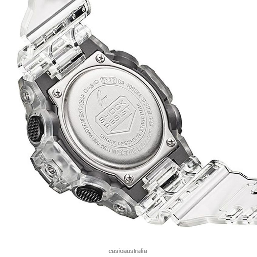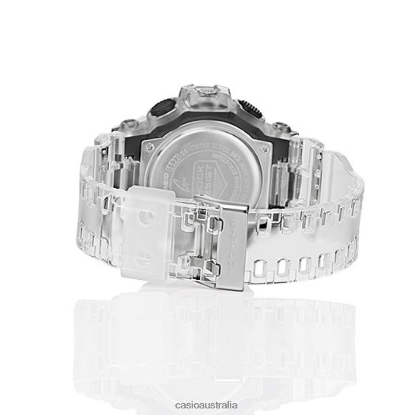 From G-SHOCK, the toughness watches that are ever evolving in an endless pursuit of strength, the skeleton series models are made from translucent resin parts. The coloring is clear with a white base. Based on the dynamic 3D-face design of the GA-700, this skeleton series model features chic coloring making it suitable as a fashion item.