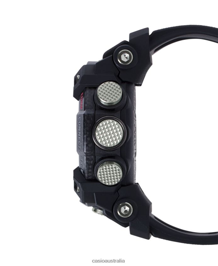 This is a model from the G-Shock Mudmaster Series, designed for use in extreme environments scattered with rubble, dirt and debris, and uses carbon materials. The use of high rigidity carbon on the case keeps damage and deformation at bay, and ensures a high level of airtightness and shock resistance. This model also features a filter that protects against the invasion of mud, a stainless steel panel back, and a back cover made of shock-resistant fine resin embedded with glass fibers, giving it a high level of resistance to dust and mud. The bezel also uses three layers of fine resin with carbon fiber inserts and is designed to resemble a portable gasoline can that could be found on off-road vehicles. Function-wise, this model comes with compass, altimeter/barometer, temperature reader and pedometer. In addition to being able to easily correct the time using the dedicated CASIO WATCHES app, there are lots of other useful features including the Mission Log feature, which automatically records in the app altitude data obtained from the watch and route data obtained by your smartphone. This is a toughness watch that supports you in taking quick decisions and accurate actions.