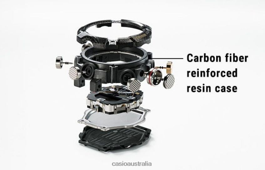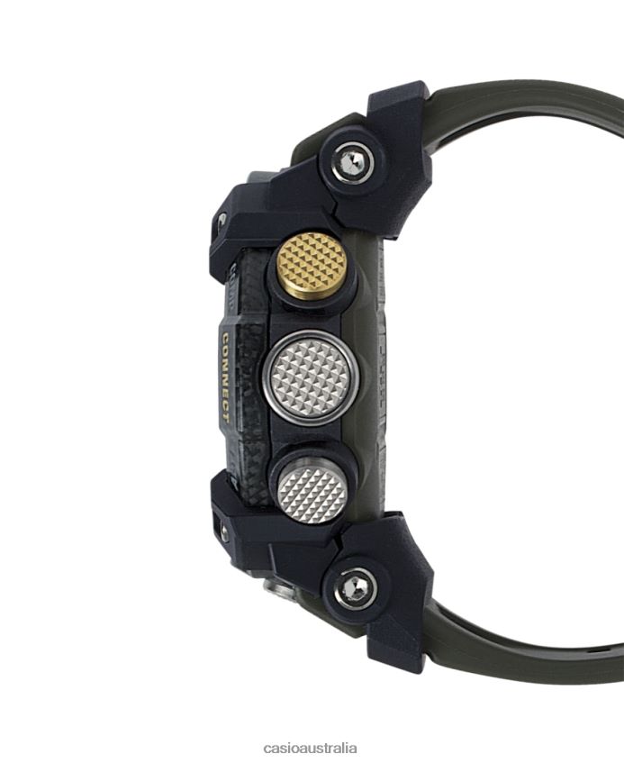 This is a model from the G-Shock Mudmaster Series, designed for use in extreme environments scattered with rubble, dirt and debris, and uses carbon materials. The use of high rigidity carbon on the case keeps damage and deformation at bay, and ensures a high level of airtightness and shock resistance. This model also features a filter that protects against the invasion of mud, a stainless steel panel back, and a back cover made of shock-resistant fine resin embedded with glass fibers, giving it a high level of resistance to dust and mud. The bezel also uses three layers of fine resin with carbon fiber inserts and is designed to resemble a portable gasoline can that could be found on off-road vehicles. Function-wise, this model comes with compass, altimeter/barometer, temperature reader and pedometer. In addition to being able to easily correct the time using the dedicated CASIO WATCHES app, there are lots of other useful features including the Mission Log feature, which automatically records in the app altitude data obtained from the watch and route data obtained by your smartphone. This is a toughness watch that supports you in taking quick decisions and accurate actions.
