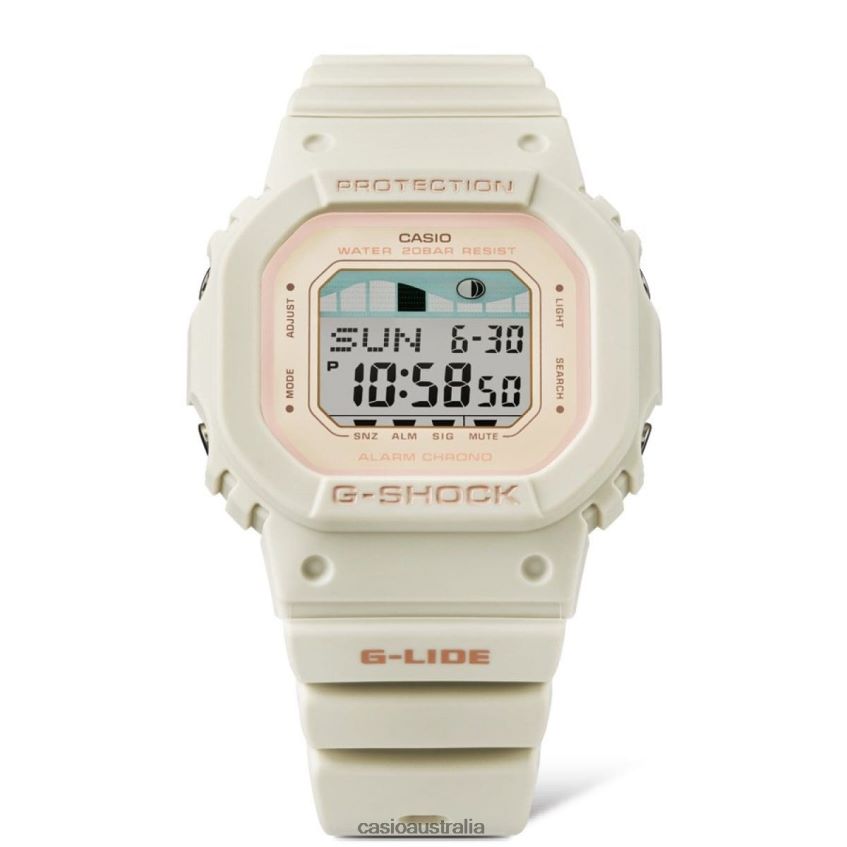 Introducing a more compact G-LIDE sports watch with tide graph displayfortably compact and slim, this design also takes its cue from nature. The bezel and band are made with eco-friendly biomass based resin using renewable organic resources to reduce environmental impact. Eco-friendly and functional, these watches deliver the tide graphs and moon data needed to ride the waves around the world, directly to the surfer's wrist.