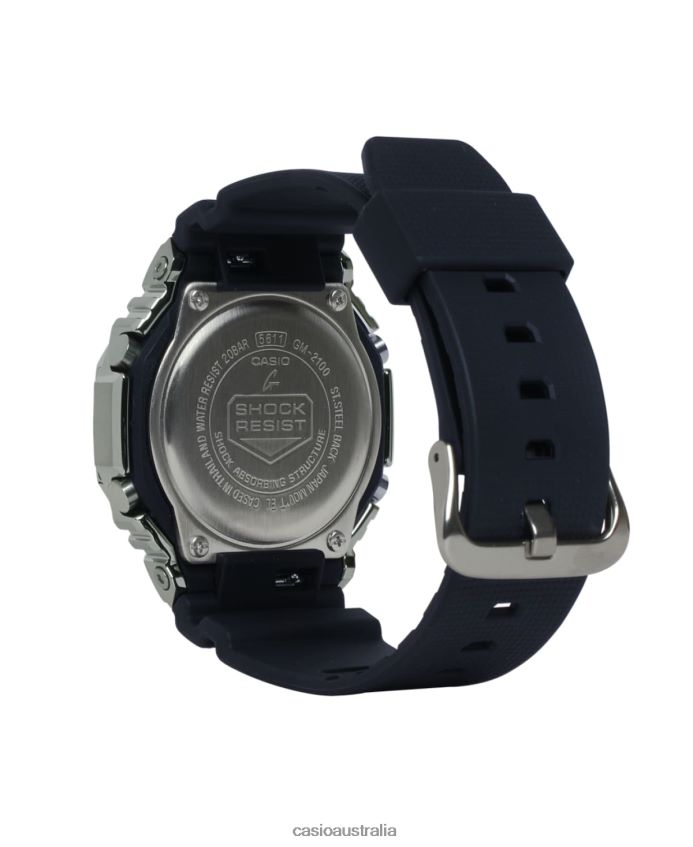 Go sleek, sharp and bold with the new black band and silver stainless steel bezel GM2100-1A in a metal-clad octagonal take on the original iconic design.Forged in stainless steel with rounded hairline finish, the strong bezel says super style all the way. The dial is treated with vapor deposition finish for a meticulously detailed metallic look that suits a classic metal G-SHOCK timepiece. Incremental variations in the detailed square dot texturing on the wristband take casual urethane materials up a notch.