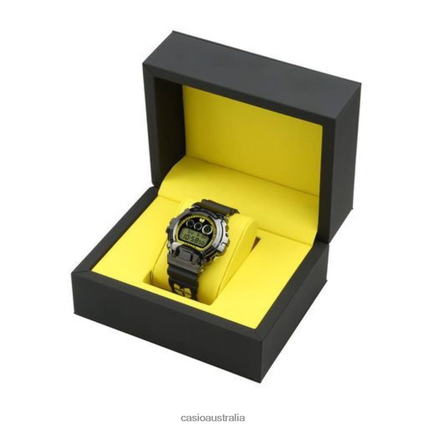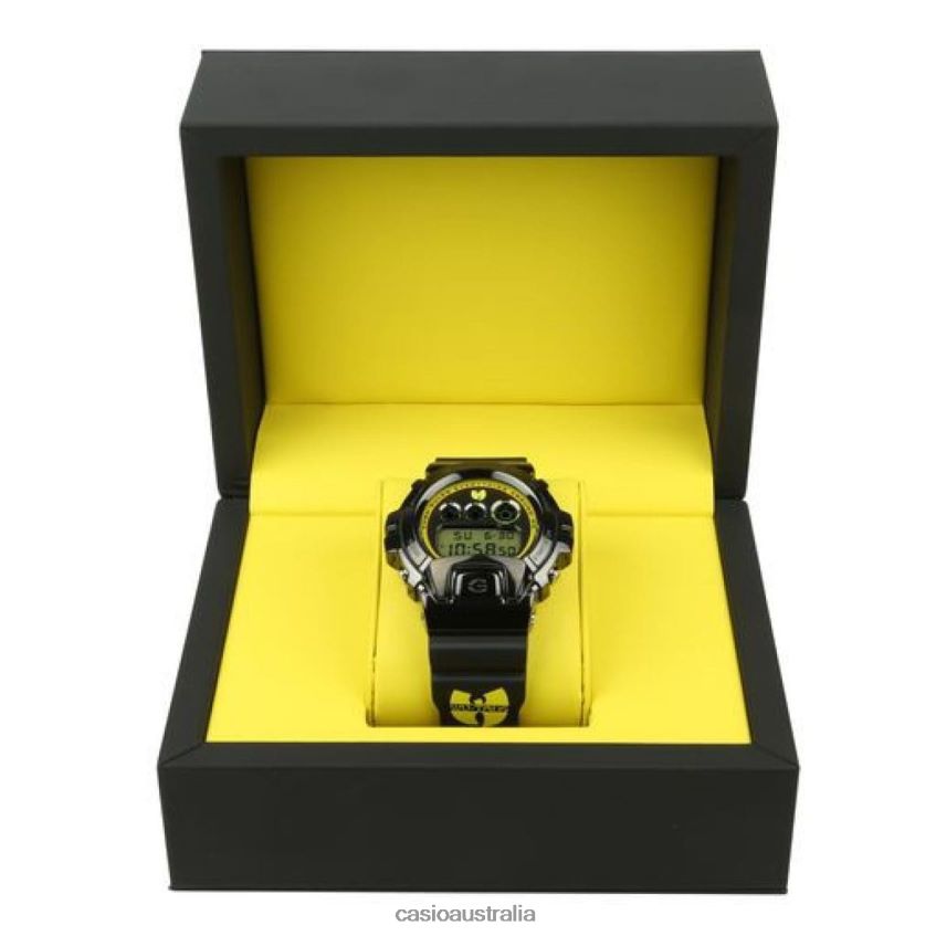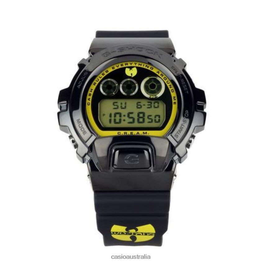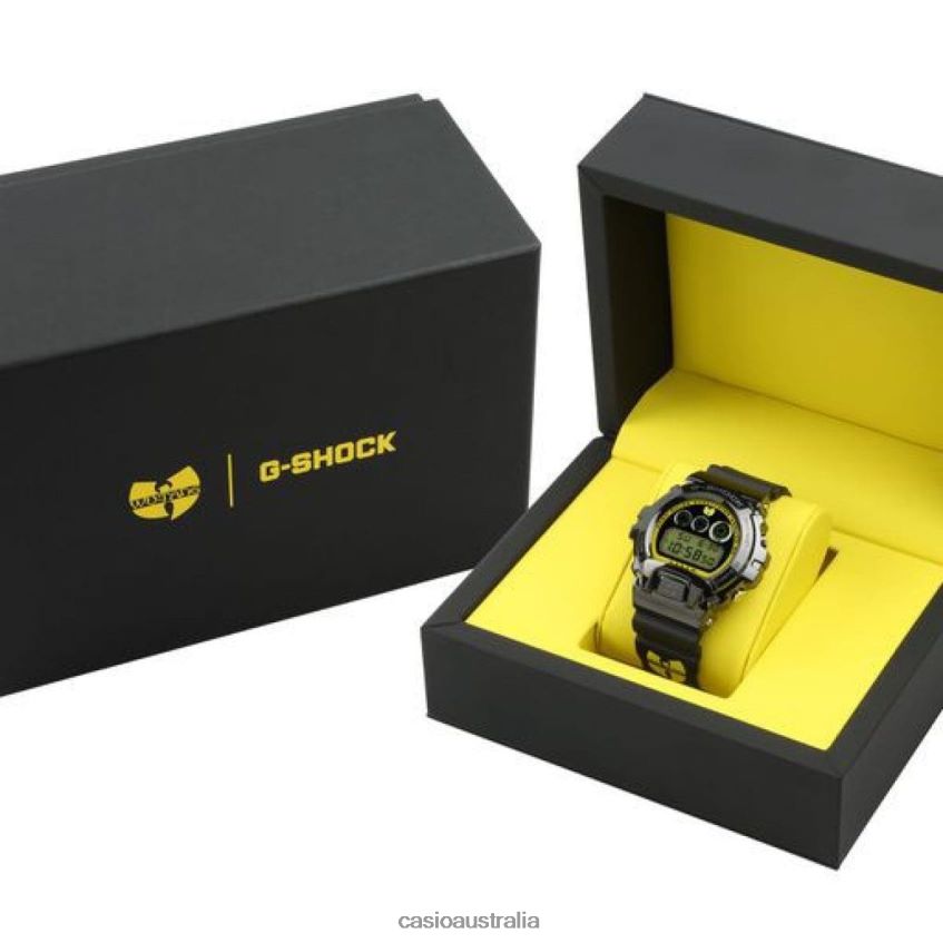 The GM6900WTC22-9 features Wu-Tang Clan's iconic "Killer Bees" black and yellow color combination branded with their unmistakable "W" logo on the band and dial and "WU-TANG" displayed within the electro-luminescent backlight that illuminates with an afterglow. This model sports an elevated stainless steel black IP bezel -- an upgrade from the previous version -- that represents the evolution of both the hip-hop group and the 6900-case design. In addition to the "W" logo, one of Wu-Tang Clan's most memorable lyrics, "Cash Rules Everything Around Me C.R.E.A.M." is printed around the border of the black mirror-finished dial.Whether hanging around in the "Mysterious Land of Shaolin," Staten Island, New York, where the group formed, or any other region, the impact of their music has a lasting presence due to the group's influence on new rappers from the West Coast to the South.The GM6900WTC22-9 offers the absolute toughness you expect from a G-SHOCK and will remain a staple in street fashion, just as Wu-Tang Clan remains a household name in hip-hop.
