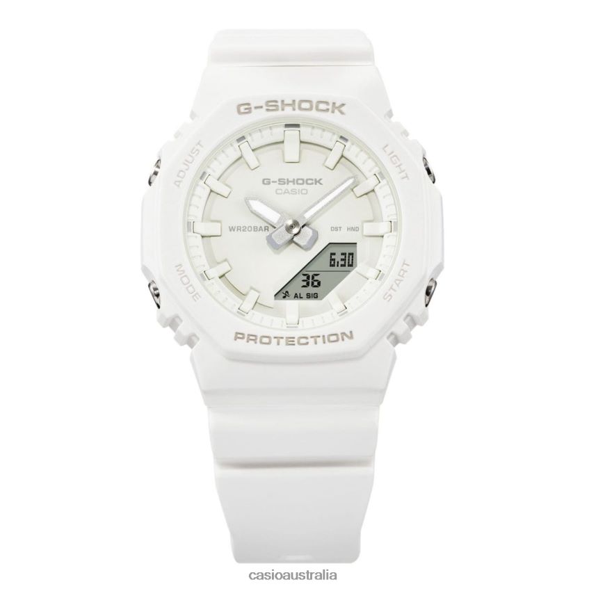 Enjoy the ever-popular digital analog G-SHOCK look with a fit more comfortable than ever.The GMAP2100 takes the already compact GMAS2100 design and makes it even slimmer and more compact, with a shorter band length, as well, to fit smaller wrists with total comfort.Monochromatic finishes in vibrant colors - dynamic turquoise blue (new color), bright pink, and classic white - lift the spirit, and the 9 o'clock inset dial from the original GMAS2100 is left behind for a streamlined, minimalist look.The stylish, yet practical watch face features a dial, logo, index marks, hands, and other components finished in different shades of the same color, simultaneously projecting sophistication and ensuring an easy read.The bezel and band of these watches are made with bio-based resin produced from renewable organic resources, a material expected to help curb CO2 emissions and otherwise reduce environmental impact.