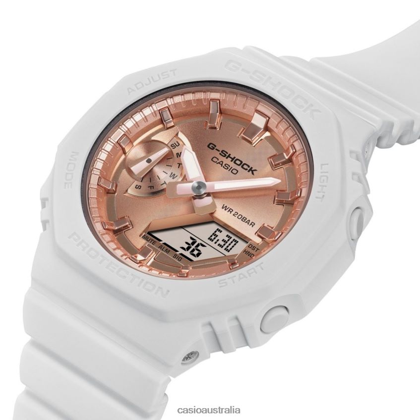 Add a shine of individuality to any outfit with a touch of brilliant pink gold on your wrist.These GMAS2100 timepieces feature a flat dial finished in pink gold vapor deposition and simple bar index marks for a simple, minimalist, yet sparkling look.