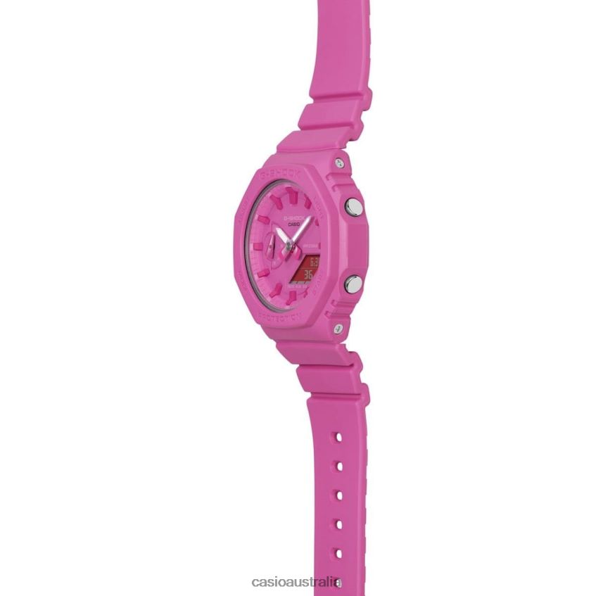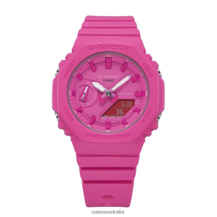 G-SHOCK GMA-S2100P-4A: Hot Pink Fusion of Style & PurposeElevate your wrist game with the G-SHOCK GMA-S2100P-4A. This striking timepiece is more than just an accessory; it's a statement.Distinctive Features:1. Vivid & Vibrant: Experience the fiery charm of hot pink, a color that doesn't just demand attention but owns it. Stand out in any crowd with this eye-catching hue.2. Timeless Design with a Twist: Drawing inspiration from the revered digital analog GMAS2100 and its larger counterpart, the GA2100, this model takes the legacy forward. It's not just about the color but also about the texture and feel, amplified by metallic-finished buttons and buckle.3. Beyond Aesthetics - A Stand for Research: Every purchase is a step towards hope. G-SHOCK proudly supports the Breast Cancer Research Foundation, donating $20,000 this year. While the contribution isn't sales-driven, your choice emphasizes the collective commitment towards a noble cause. BCRF relentlessly works with the mission to prevent and cure breast cancer, investing in the world's most groundbreaking research.4. Durability Meets Elegance: While the hot pink hue grabs immediate attention, the watch's intrinsic strength and G-SHOCK's signature durability ensure it's not just about looks, but lasting performance.
