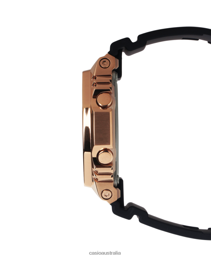 Go slim, clean and bold with a mid-sized black resin band GMS2100PG1A4 in a metal-clad octagonal take on the original iconic design.Forged in stainless steel with rounded hairline finish, the strong rose gold bezel says super style all the way. Only the lettering at the top and bottom are engraved, for a simple, one-piece design. The dial, flattened for slimness, is treated with ion plating color and mirrored indexes to add shimmery depth.