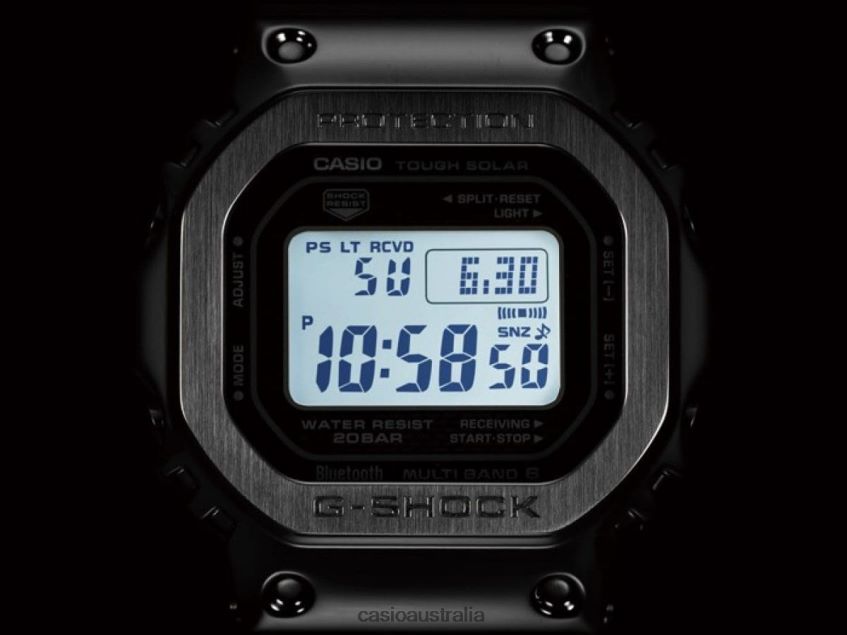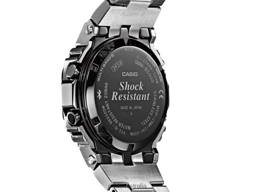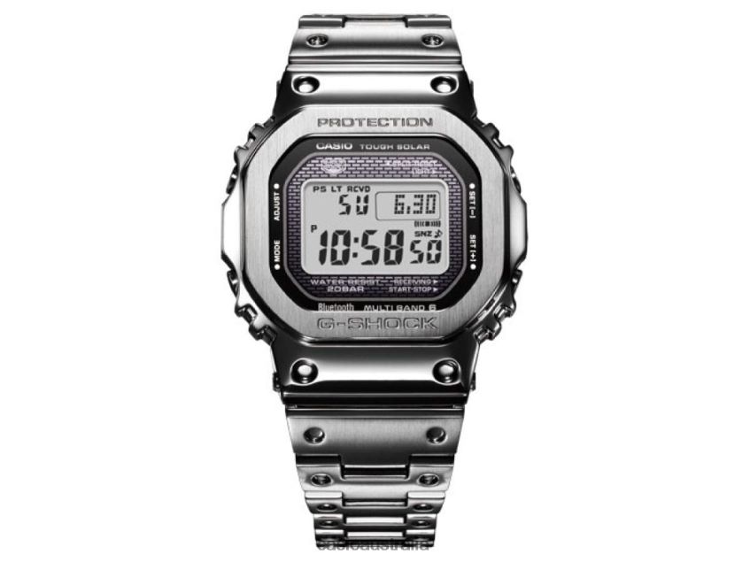 The DW-5000C is the original G-SHOCK model from 1983. The GMW-B5000 Series has inherited its characteristic square design and been given the full metal treatment along with upgraded features including smartphone linking. The watch has been given a full-metal case by using a shock-resistant fine resin cushioning material inserted between the case and the sturdy stainless steel metal bezel. High-density mounting technology also allows the watch to maintain its size. The back of the watch features a solid Screw Lock Back and has been DLC treated for resistance to wear. The metal band has been dimple processed, inheriting the Resin Band design of the original. Visibility too has been enhanced via use of a film solar cell and STN-LCD (liquid crystal). Function-wise, this model comes with Bluetooth communications and can link with a dedicated app to obtain precise time information. The watch is also packed with practical features including a time correction system that uses standard time and frequency signals (Multi-Band 6), a reliable source of power in the form of Tough Solar technology, high-luminance Full Auto LED backlighting, World Time and day of the week display in six languages. This is a G-SHOCK model that stays true to its predecessor while undergoing further refinement through the application of a full-metal design.