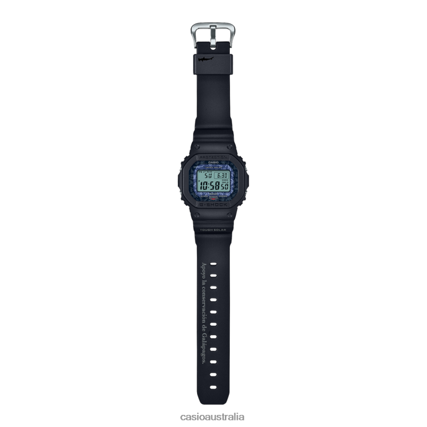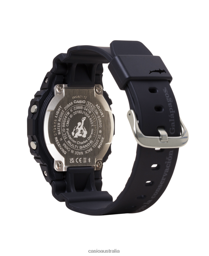 Declare your commitment to the Galapagos Islands with a truly special collaboration celebrating the Charles Darwin Foundation.The case and band are made of bio-based resins to honor the commitment to the environment that G-SHOCK and the foundation share. This commitment is also captured in the dial design, printed watch glass, band loop, and LED backlight display - all inspired by the hammerhead sharks that call the Galapagos home. The case back is engraved with the Charles Darwin Foundation logo and name in Spanish, while the band printed with the Spanish phrase, Apoyo la conservacion de Galapagos, proclaims your commitment to protecting these precious islands.