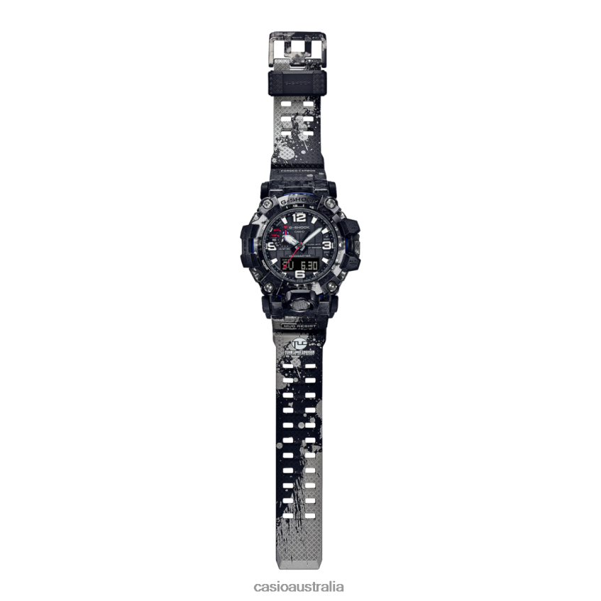 Bold, fearless, and ready for anything! A very special collaboration between G-SHOCK and the Toyota Auto Body Team Land Cruiser inspired by this veteran of the toughest race in the world, the Dakar Rally.Built to withstand all the mud and dust your adventures can bring, the G-SHOCK MUDMASTER is the ideal canvas for a collaboration with a car this tough. Add in forged carbon bezel components and a carbon core guard structure for a smaller, lighter watch, and you're ready to take on the harshest of terrain.Designed to evoke the Land Cruiser after an intense day speeding across the desert, the band features a mud and sand splatter pattern. Laser engraving on the black ion-plated stainless steel bezel and buckle carry the motif even further.Accents like the blue, white, and red team colors and the logo on the band and case back pay tribute to the toughness of this machine, always ready to take on the most challenging of environments.Team Land Cruiser, Toyota Auto BodyTeam Land Cruiser at Toyota Auto Body Co., Ltd., a Toyota Group manufacturer of minivans, commercial vehicles, and SUVs, has participated in the Dakar Rally every year since 1995.