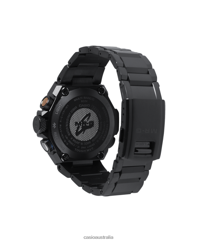 Introducing the stunning MRGB2000, a proud addition to the MR-G line, the pinnacle of the G-SHOCK brand. The meticulous attention to construction, function, materials, and finishes that is the hallmark of MR-G delivers the strength and beauty that has always been at the heart of Japanese craftsmanship.Cut to evoke the look of a Japanese fan or folding screen, the dial's perimeter features a simple, yet gorgeous texture. The gentle curvature of a sword blade is echoed in index marks with a grind-mark finish that offers the beautiful edging and curves that only Yamagata Casio's nano-processing technology can produce.Yet function would not be outdone by style in this one-of-a-kind watch, which features radio-controlled calibration and smartphone pairing via Bluetooth to delight even the most practical owner. The exclusive MR-G module even has a gold-plated retainer plate to reduce electrical resistance. As if this weren't enough, Sallaz polishing, double-hardening, and a sapphire crystal with anti-reflective coating ensure that every detail of this timepiece exudes power and excellence.Step up to the MR-G, the embodiment of the strength, beauty, and precision that come to life when Japanese technology meets Japanese aesthetics. Function-wise, this model is equipped with time signal reception and Bluetooth communication capabilities for smartphone connectivity.This MR-G model incorporates ancient Japanese strength and aesthetics, combined with unmatched modern materials, structure, and functions.Returns will only be accepted if product is in original packaging and protectant film is in place.