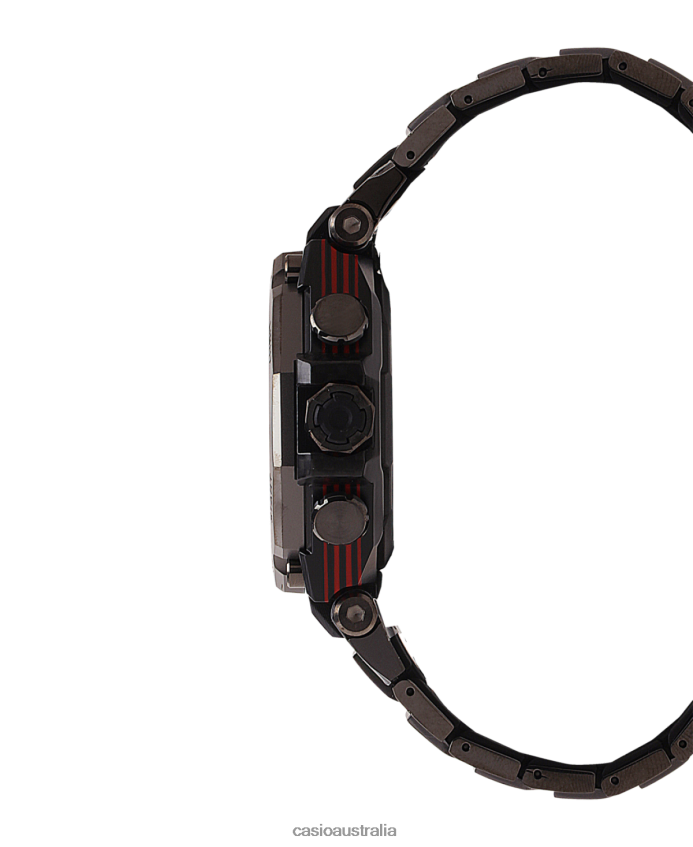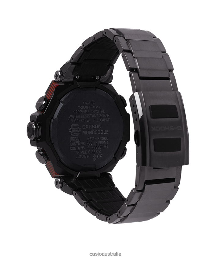 Say hello to stylish toughness crafted where metal, carbon and resin meet. Featuring a monocoque inner case of carbon-reinforced resin set in a layered carbon frame for a lighter weight and more durable timepiece.235 sheets of layered and machined carbon and glass fiber form the bezel frame at the sides of the watch. These lightweight materials deliver a bezel frame about 77% lighter than one in stainless steel. The top-layer carbon sheet wraps around the sides at the 3 o'clock, 6 o'clock, 9 o'clock, and 12 o'clock positions for greater strength, while tube-shaped carbon sheeting encircles the lugholes for enhanced durability. Glass fiber layers in G-SHOCK red provide a pop of strong color around the sides of the case.