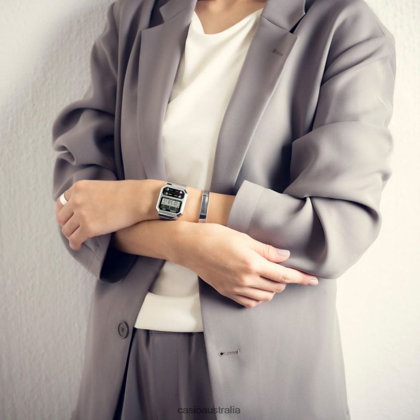 From CASIO VINTAGE, new A100 Series with a unisex design and stylish retro gadget feel.The A100 series is a reproduction of the F-100, CASIO's first resin case model. The design has been updated for this more modern version while retaining the distinctive layout of the F-100's four front buttons along with CASIO vintage metal elements.Features and functions include calendar and stopwatch capabilities, along with everyday wear water resistance and LED light illumination for easy reading in the dark.The bands feature a slide-type clasp that lets you easily adjust the band length without special tools. The A100WE-1AVT comes in a classic stainless steel silver.
