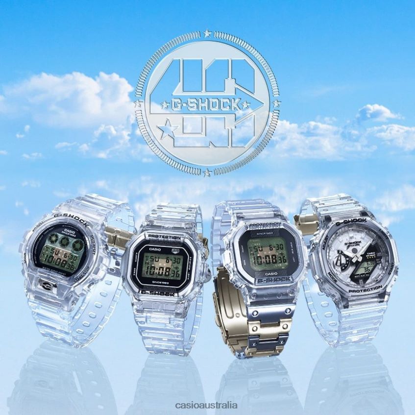 Express yourself in no uncertain terms with the G-SHOCK 40th anniversary Clear Remix lineup - popular G-SHOCK designs deconstructed with see-through components for the clearest look yet.See-through materials for the band, case, dial, LCD, and buttons provide a behind-the-scenes view of the module substrate printed with the G mark and G-SHOCK logo. The case back features the Eric Haze-designed 40th logo, and the band loop is engraved with four stars in a nod to this special anniversary. These details and the first-ever use of a see-through case made of clear glass fiber diamide deliver a singular design worthy of an exceptional limited-edition G-SHOCK. The new lineup includes watches modeled after multiple iconic G-SHOCK timepieces: the very first G-SHOCK, the DW-5000; the classic digital DW-5600; the DW-6900 with distinctive front button design; or the GA-2100/GMA-S2100 or the GA-110/GMA-S110, which can be worn on their own or as part of a matching set.See-through case: DW-6940RX, GA-114RX, GMA-S114RXSee-through dial: DW-6940RX, GA-114RX, GMA-S114RX, GA-2140RX, GMA-S2140RXSee-through LCD*: DW-5040RX, DWE-5640RX, DW-6940RXSee-through buttons: GA-114RX, GMA-S114RX*The digital display may be difficult to read at certain viewing angles due to the see-through materials used for the LCD.