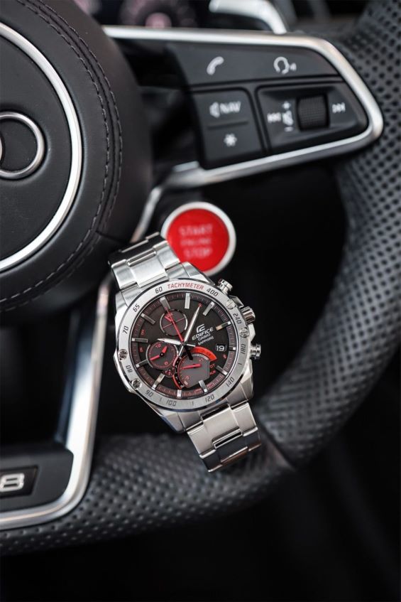 Smartphone Link | Super Slim High Spec Chronograph | Solar powered | Despite being a high-spec multi-hand chronograph with a smartphone link via Bluetooth and being equipped with Tough Solar, which charges even in low light, this model boasts a thin 8.9 mm case to enhance wearability. Major features include the Accurate Time System that automatically links to a smartphone four times a day via Bluetooth to correct the time, and world time that allows wearers to select cities from the approximately 300 cities on the smartphone app. The stopwatch, which has a 200-lap memory, transfers measurement data to a smartphone where it is recorded via the app in 1/1000 second units. It is also equipped with a last lap indicator, which displays the time difference between the last lap than the previous lap.