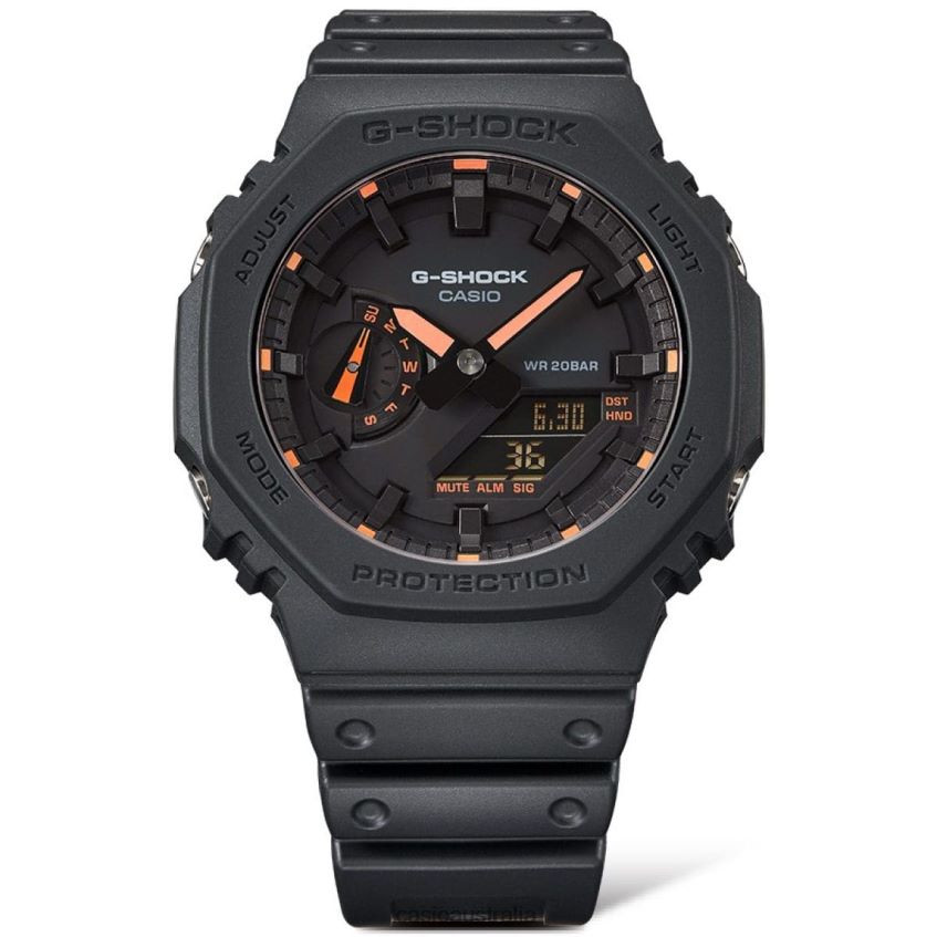 Make a splash with color set against matte black in a special design that pops with neon accents.The octagonal shape and streamlined design of the GA-2100 puts on textured matte black and vibrant neon color for a stylishly cool new look. Hour and minute hands with phosphorescent paint stay visible in the dark to keep you on your game all day and night.