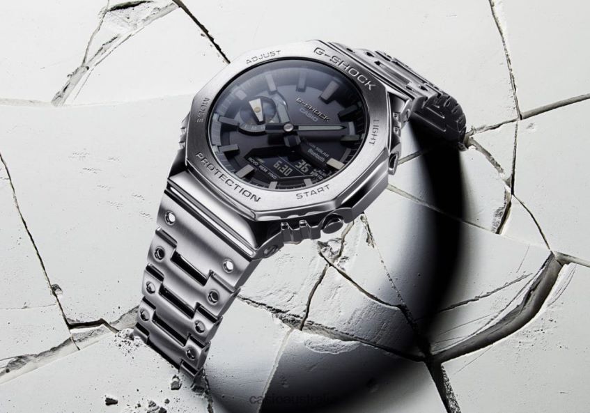 Introducing the first full-metal addition to the continually evolving 2100 line of timepieces that inherit the legacy of the first-ever G-SHOCK, the DW-5000C.Luxe full-metal construction with a screw-back case, bezel, and band crafted in stainless steel creates a streamlined, minimalist design, while protecting the module from impact when dropped. We take it way back with the octagonal bezel and dimpled band design of the original from 1983, all done in metal.High-density mounting keeps the analog-digital combination module slim, while still providing the advanced functions you love in a compact profile and comfortable fit.Pairs with a smartphone via Bluetooth . Simply tap into the dedicated app for precision timekeeping that keeps you on track. With Tough Solar, a high-brightness LED light and a range of other convenient functions, this is a timepiece that delivers on style and practical utility.