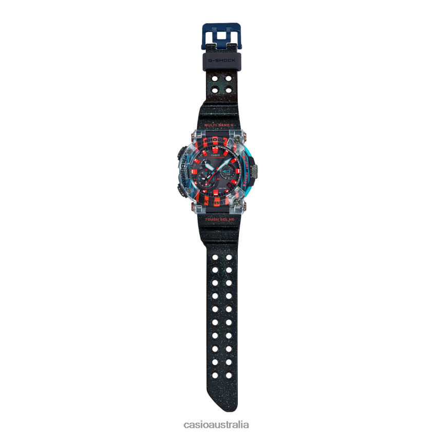 Dive into the celebration of the 30th anniversary of the G-SHOCK Master of G FROGMAN family of full-fledged diver's watches with ISO-standard 200-meter water resistance.The first-ever FROGMAN made quite a splash when it launched back in 1993. The second limited edition to commemorate the 30th FROGMAN anniversary in 2023 takes the GWFA1000 to a whole new level, with a special design inspired by the poison dart frog.The multicolor carbon bezel evokes the mysterious hues of this rare species of colorful frog living in the South American Amazon. Cut from a base material of colorful carbon and glass fibers laminated in random patterns, no two bezels are exactly alike, reflecting the rarity of this frog species.The combination of strikingly colorful bezel and translucent urethane reproduces the look and feel of the water-loving poison dart frog. The band is printed with polarized ink to evoke the speckled pattern of a frog - a touch repeated on the case back with the iconic frog character reimagined as a poison dart frog.