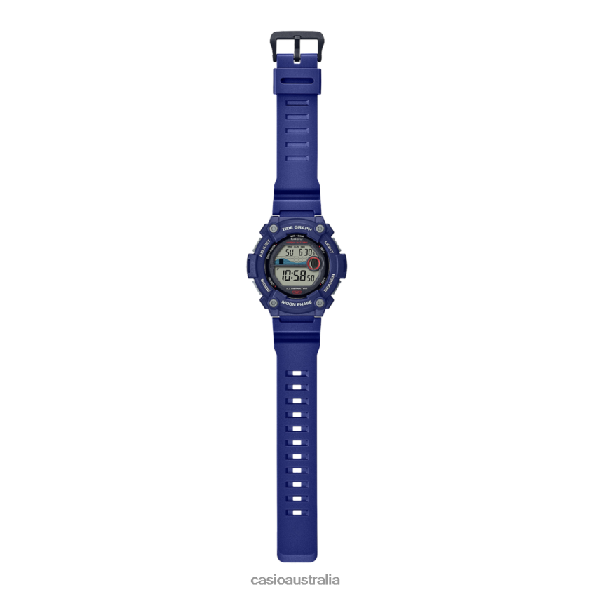 Water lovers take note! The ideal companion for anyone into marine sports.The WS1300H-2AV starts with a durable blue resin exterior design, 100-meter water resistance, and 10-year battery life. Then add on-board tide graph, moon data, and LED light ensuring an easy read even in the dark, to deliver everything a water sports enthusiast needs, right at your fingertips.With stopwatch, timer, and alarm, these versatile timepieces take you seamlessly from home or office to the pool or ocean.